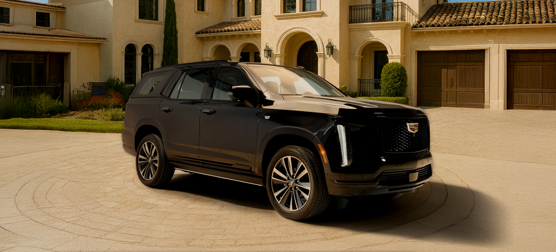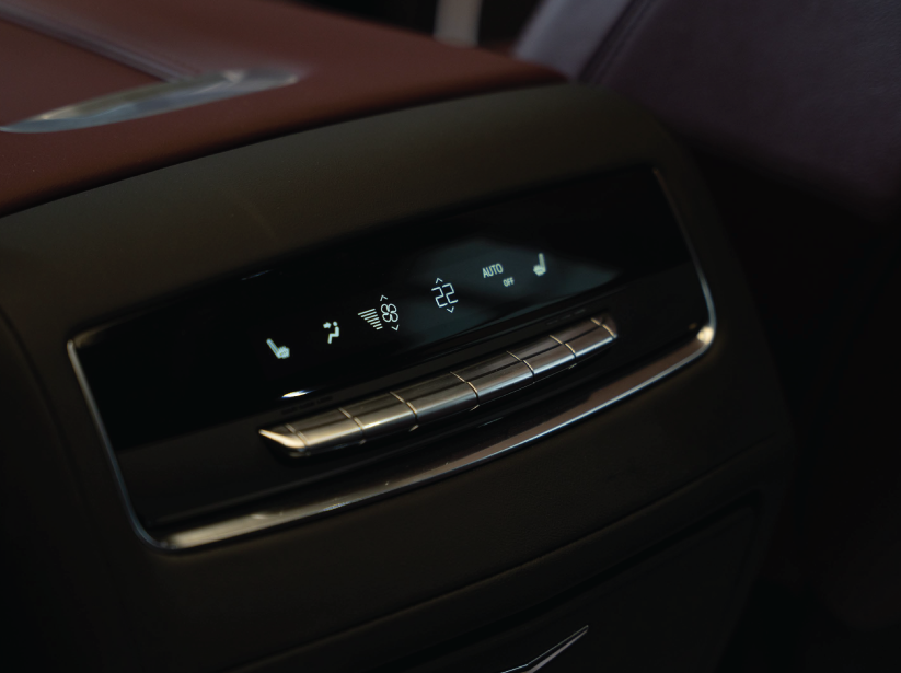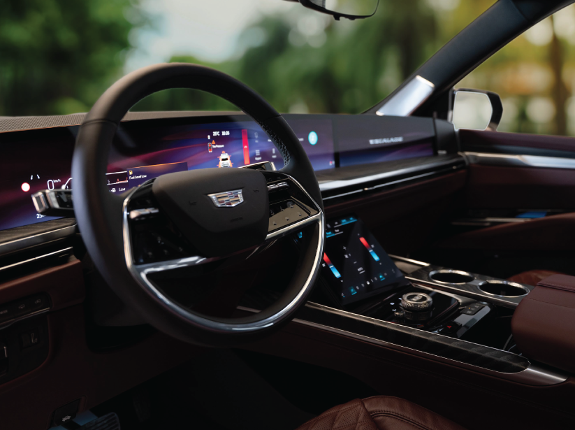 The exterior design of the Escalade Sport exudes boldness and sophistication, enhanced by sporty gloss black accents exclusive to the Sport trim and a prominent grille featuring an illuminated Cadillac emblem that demands attention. The signature vertical LED headlamps create a distinctive lighting identity, while sculpted body lines add a commanding presence that reinforces its modern elegance. Massive 22-inch aluminum wheels with a unique design offer enhanced road grip and a powerful visual impact. A panoramic sunroof completes the design, allowing natural light to flood the cabin and creating a seamless connection with the surroundings. Altogether, the design delivers a bold personality that fuses timeless luxury with contemporary sporty flair.