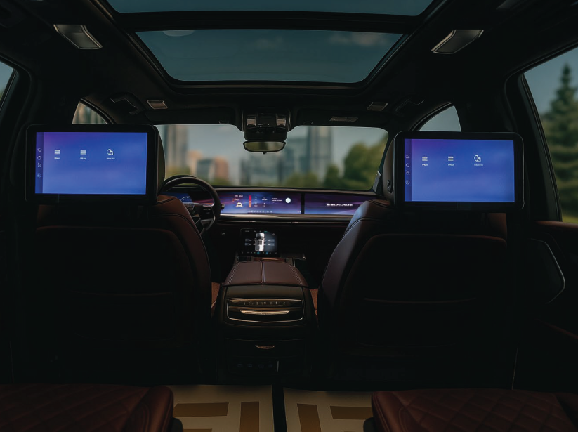 The 2025 Escalade Sport is packed with state-of-the-art technologies that transform every journey into a premium experience. At the heart of the dashboard lies an industry-first 55-inch curved OLED display with exceptional resolution, providing panoramic visuals that wrap around the driver for a truly immersive interface. The SUV offers full connectivity through built-in Google services, a 4G LTE Wi-Fi hotspot, and seamless compatibility with smartphone apps—ensuring easy access to navigation, entertainment, and communication on the go. Additional features include a Head-Up Display that projects key information onto the windshield, and an augmented reality navigation system that overlays live guidance on the instrument cluster. For audio excellence, the cabin houses an AKG Studio Reference sound system with 36 speakers strategically placed throughout the interior, delivering a concert-like listening experience for all occupants. In short, the Escalade Sport Platinum fuses advanced digital features with luxury entertainment to create a modern and indulgent driving environment.